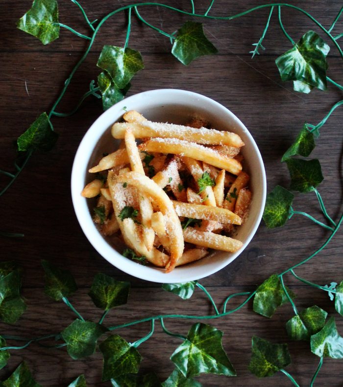 Parmesanilla ja persiljalla maustetut tikkuperunat dipin kera <3